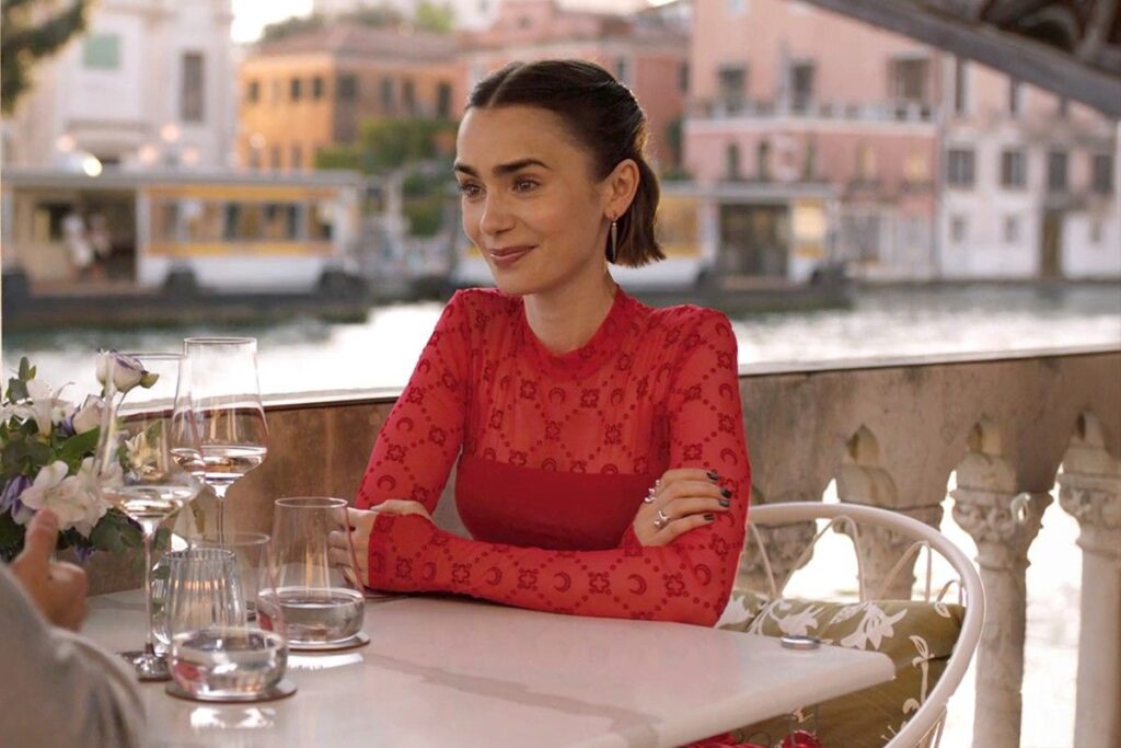 Actress Lily Collins on the Netflix series Emily In Paris.